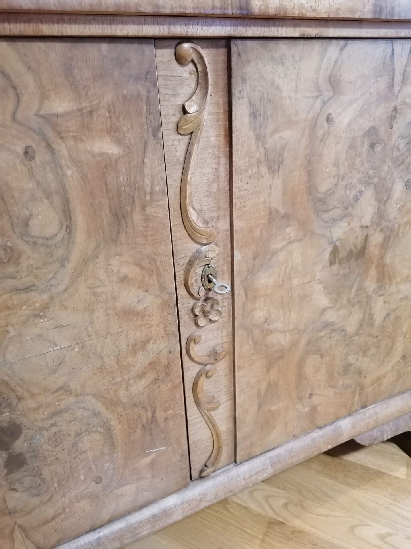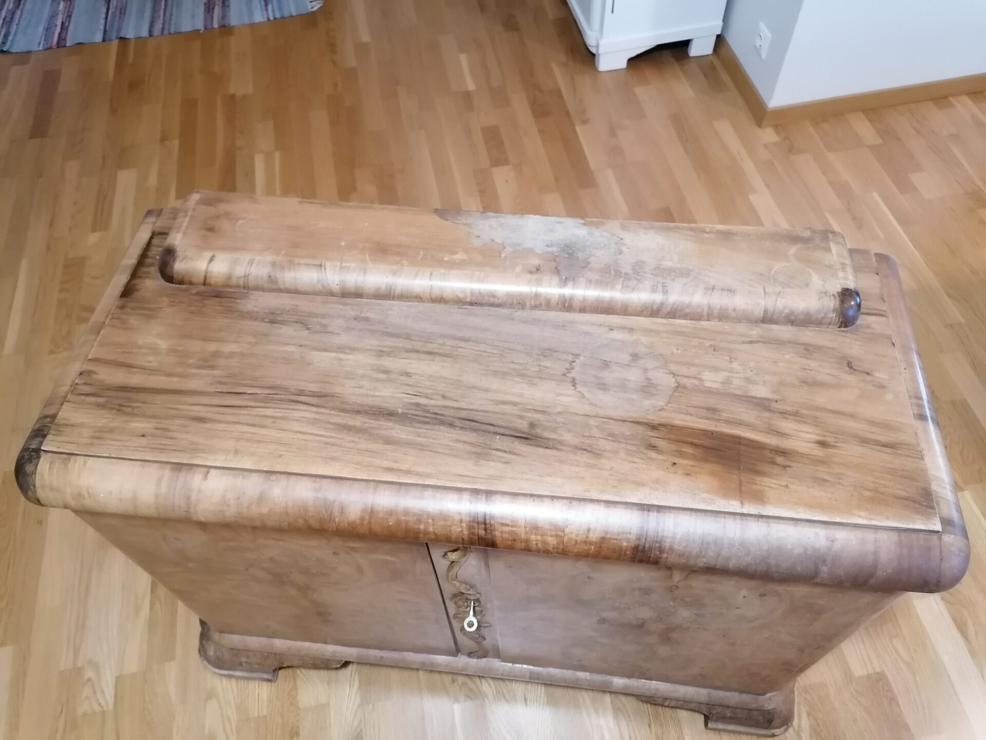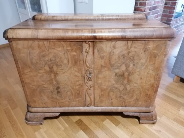 K 210 , L 102 ; S 54 cm Detailide rohke juugend puhvet. kiviplaat vajab poleeri ,saab laigud välja. valged triibud kivi muster plaadis pragu, ei ole kogu ulatuses servast-serva ülemistele ustele võti olemas