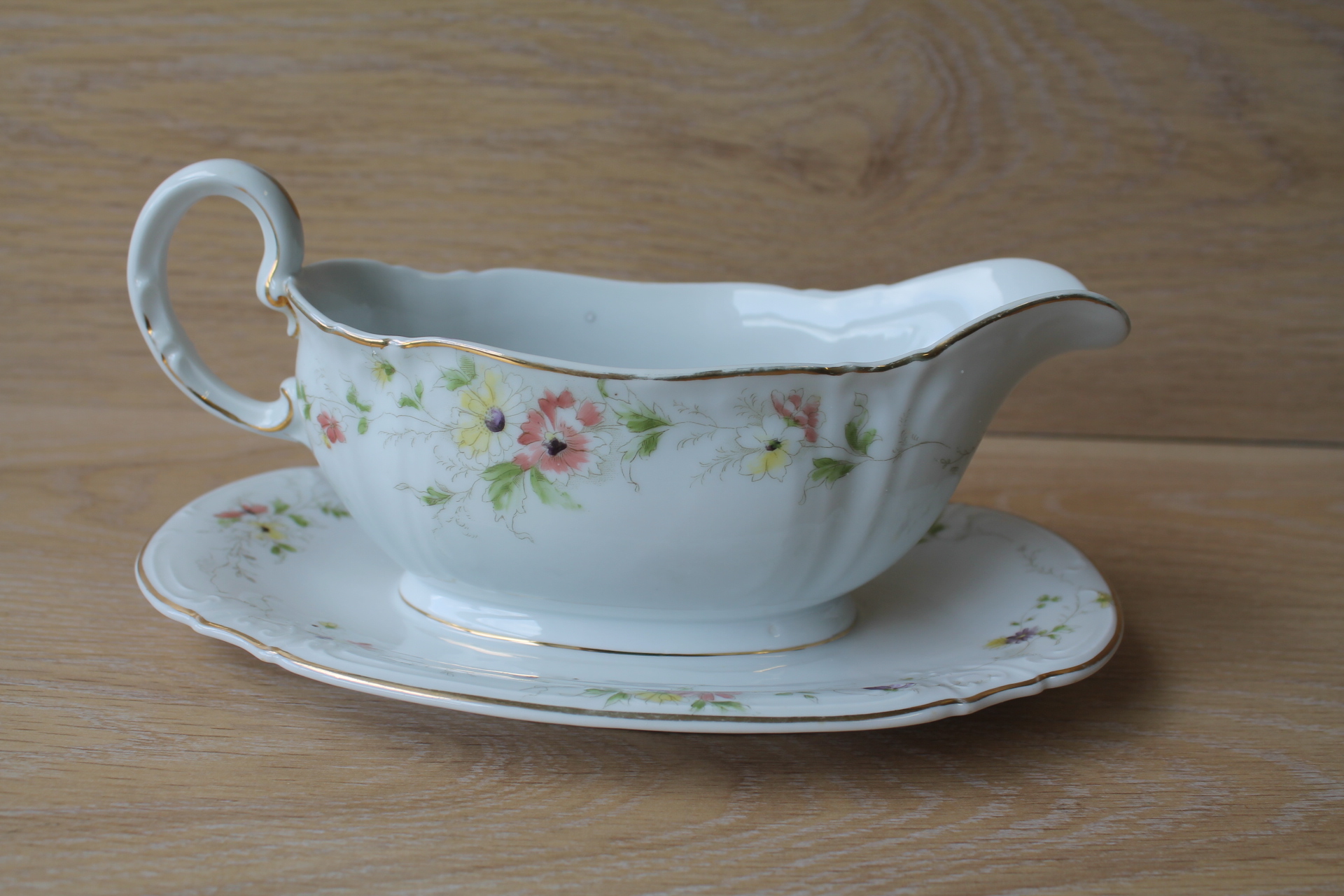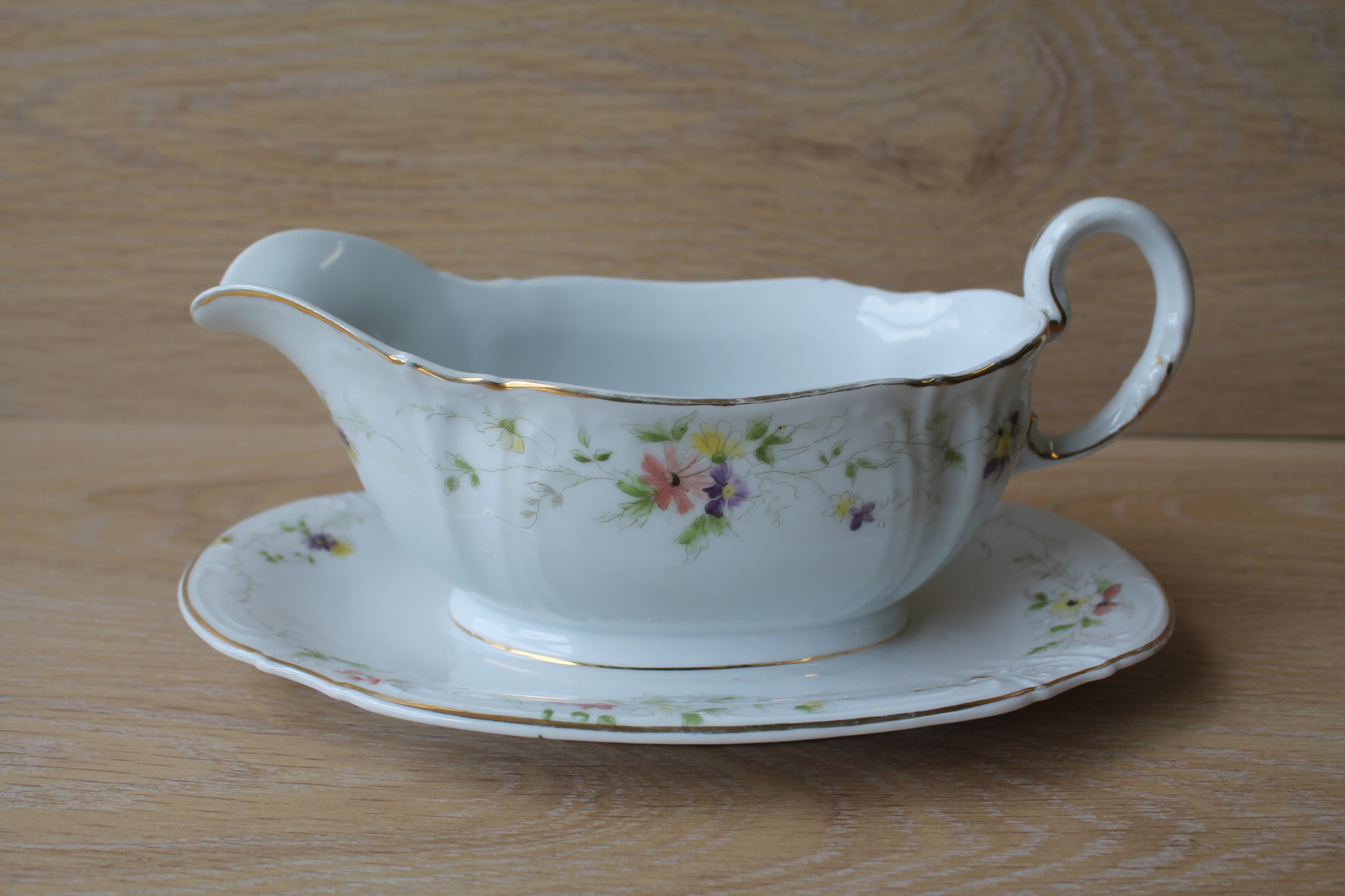 Kann K 29 cm, klaasid k 9 cm. 3 klaasi põhjas täkked.
