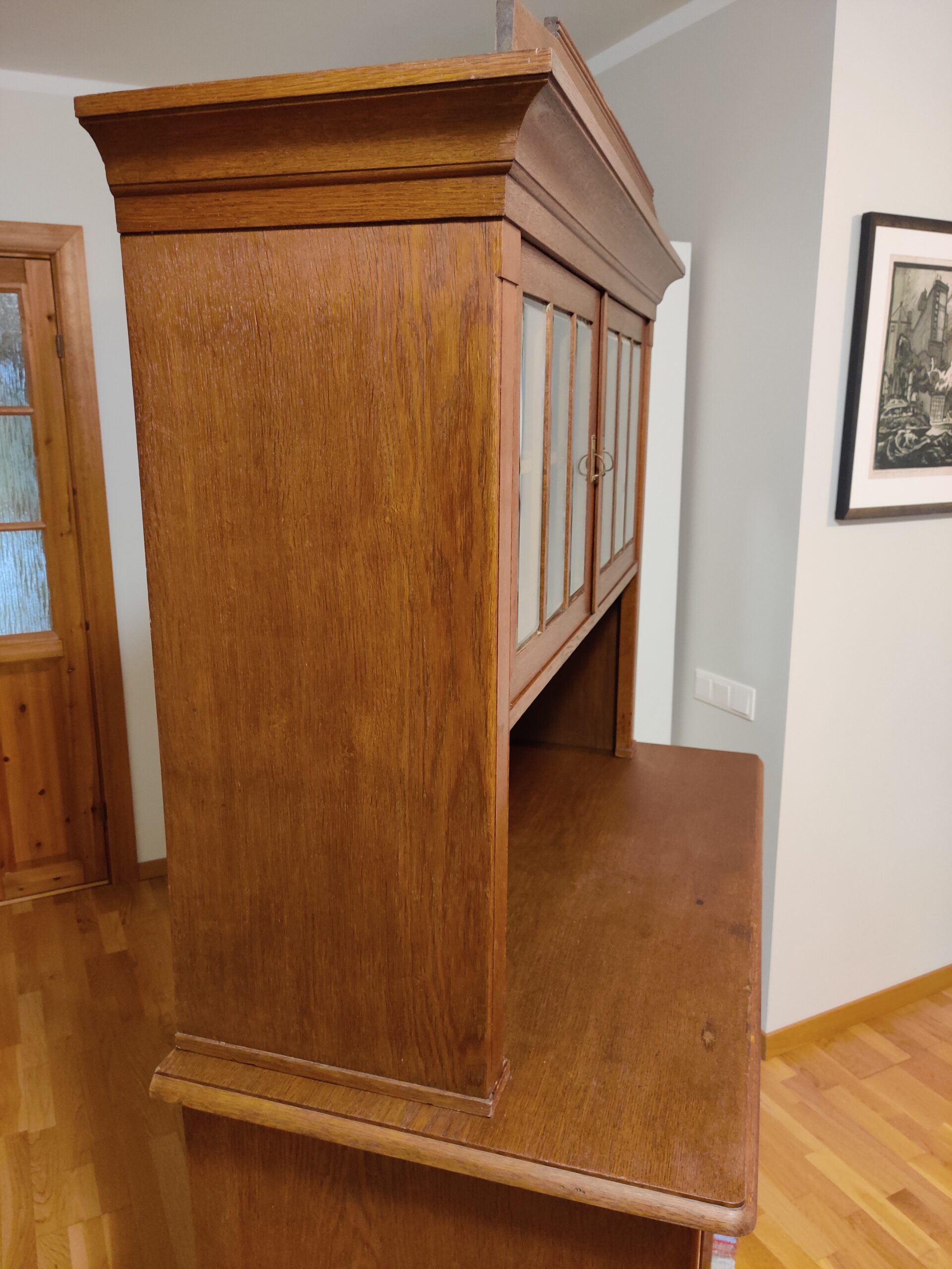 Kõrgus 67 cm, peal raam 60*42 cm Vana viimistlus kulumis jälgedega