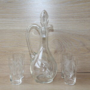 Karahvin k 27, klaas k 10 cm. Ühel klaasil väike täks.